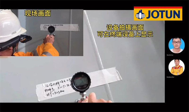 在這個“防疫常態(tài)化”的時代,出差已經不再像以前說走就能走了,施工現(xiàn)場的緊急情況無法及時處理,輕則影響工期,重則影響工程質量,后續(xù)隱患無窮。佐敦為此引進新科技——頭戴式AI計算機,現(xiàn)場人員走到哪里,后端人員就能看到哪里,涂層檢查、遠程指導、現(xiàn)場勘驗、附著力測試、線上培訓等都能即時實現(xiàn),有效提高了服務的時效性,更是降低了客戶與佐敦的工作成本。
