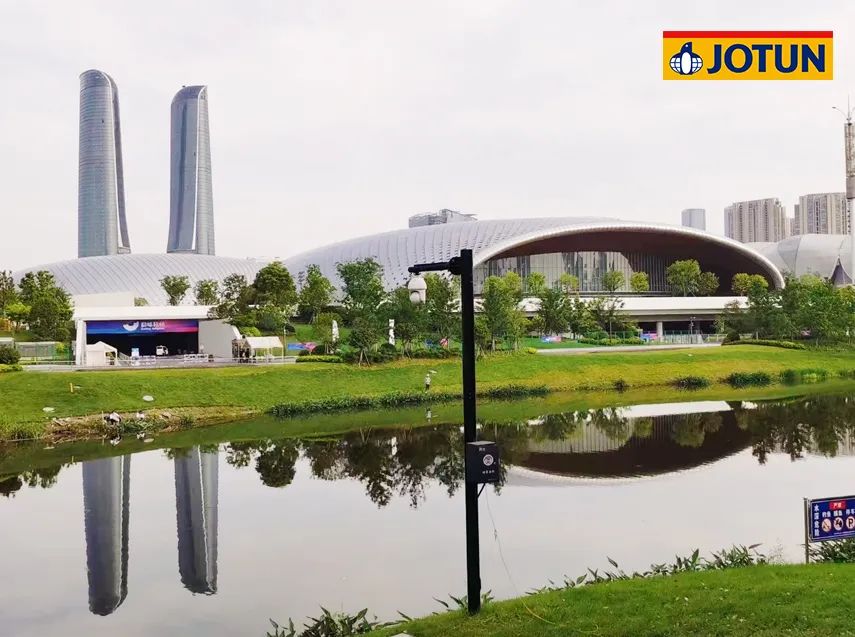 打破人們對(duì)于現(xiàn)代建筑冷冰冰的傳統(tǒng)理念,用獨(dú)特的月牙懸挑結(jié)構(gòu)創(chuàng)造張力之美,以萬(wàn)鈞鋼之重造就灞河之濱輕盈的月光之美。佐敦以豐富的鋼結(jié)構(gòu)防腐涂刷業(yè)績(jī)和專業(yè)的防腐防火長(zhǎng)效保護(hù)提案,被選定為9萬(wàn)噸鋼結(jié)構(gòu)的防腐防火涂料供應(yīng)商,特選用佐敦膨脹型防火涂料與氟碳面漆組合,為2萬(wàn)多噸的外露屋蓋鋼桁架保駕護(hù)航,實(shí)現(xiàn)“懸浮彎月”的建筑設(shè)計(jì)效果。