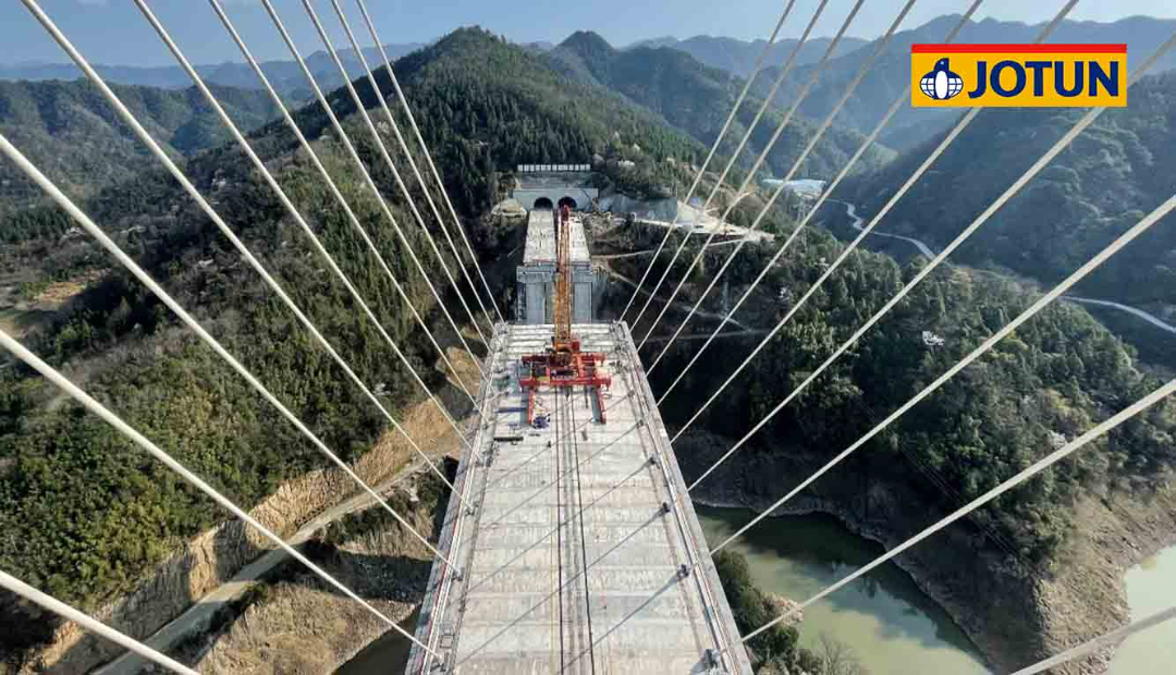 重慶雙堡特大橋是渝湘復(fù)線高速公路上的橋梁,作為世界在建最大跨徑雙跨連續(xù)拱橋,雙堡特大橋?qū)崿F(xiàn)了三項(xiàng)世界第一——雙聯(lián)拱跨徑世界第一、獨(dú)立吊塔的纜索吊跨徑世界第一、同等結(jié)構(gòu)的纜索吊吊重世界第一。該項(xiàng)目選用了佐敦高性能聚硅氧烷面漆,滿(mǎn)足橋梁高品質(zhì)耐久耐候性需求。